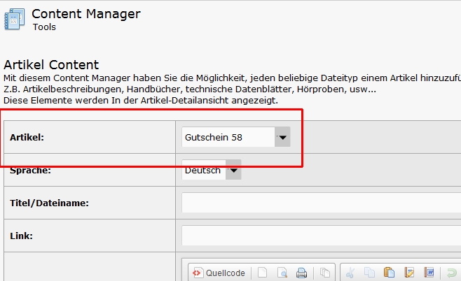 Wenn man allerdings nach einen bestimmten Artikel sucht und diesen dann im Suchergebnis nicht anklickt und direkt auf "Neuer Content" klickt, dann geht das "Neuer Content" Fenster auf und bei Artikel wird dann das Dropdown mit allen Artikel ausgegeben! Was bei tausenden von Artikeln mir den Testshop lahmgelegt hat....