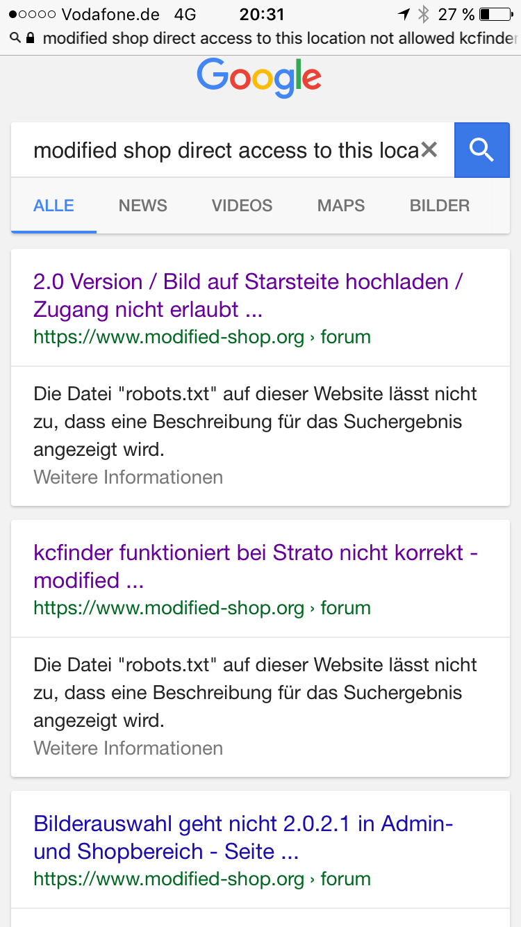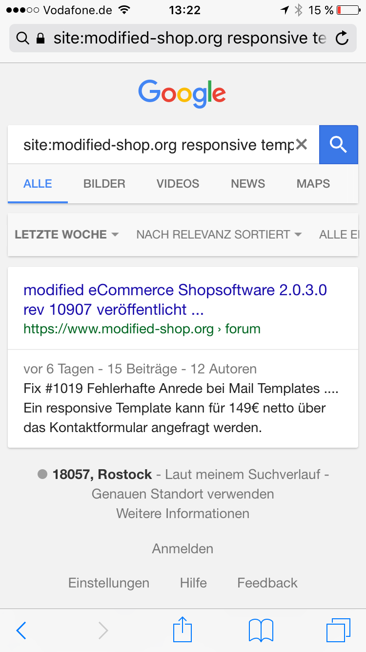 Wieder getestet mit "site:modified-shop.org responsive template" und alle Ergebnisse haben den Hinweis: