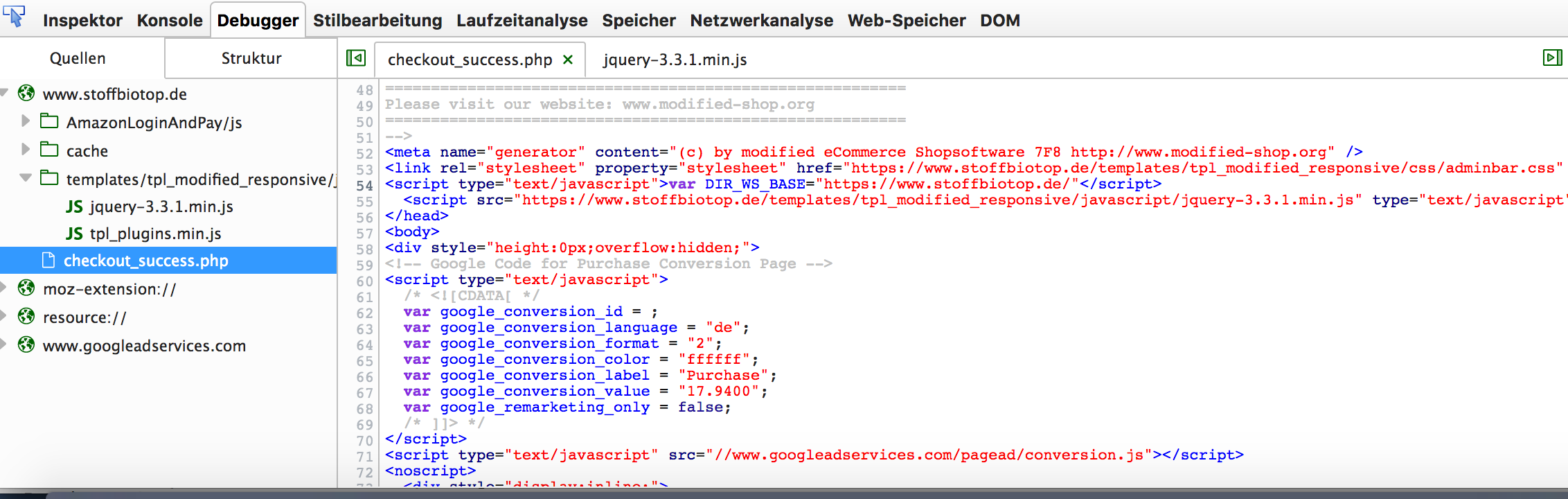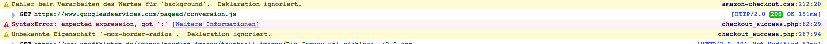 Syntaxerror checkout_success.php in Webkonsole wenn keine Conversion ID von Google Analytics vorhanden