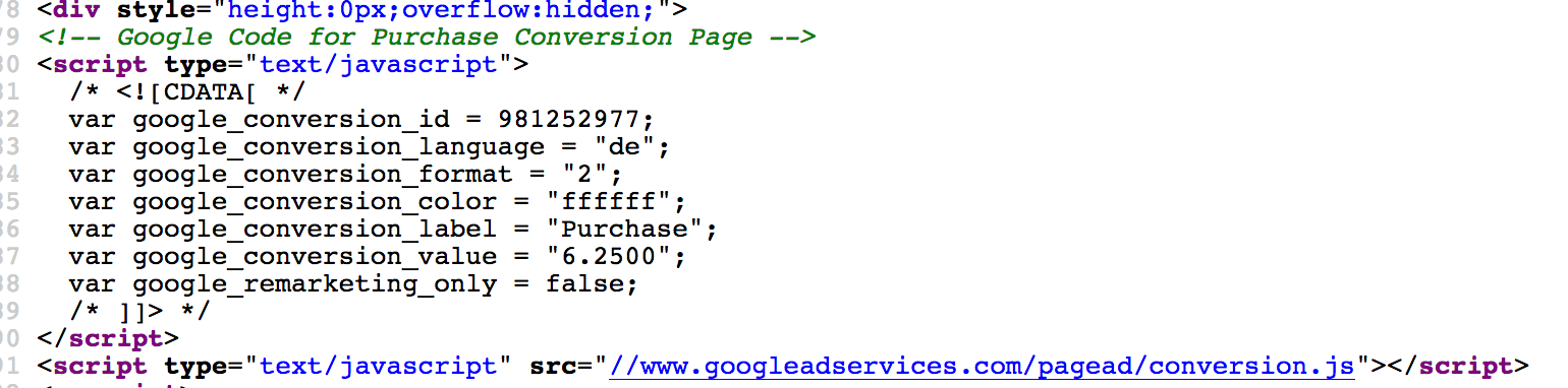 Wenn man kein Adwordskonto bei Google direkt eingerichtet hat, dann bleibt dieses Feld auf der checkout_success.php leer und gibt einen Syntaxerror.