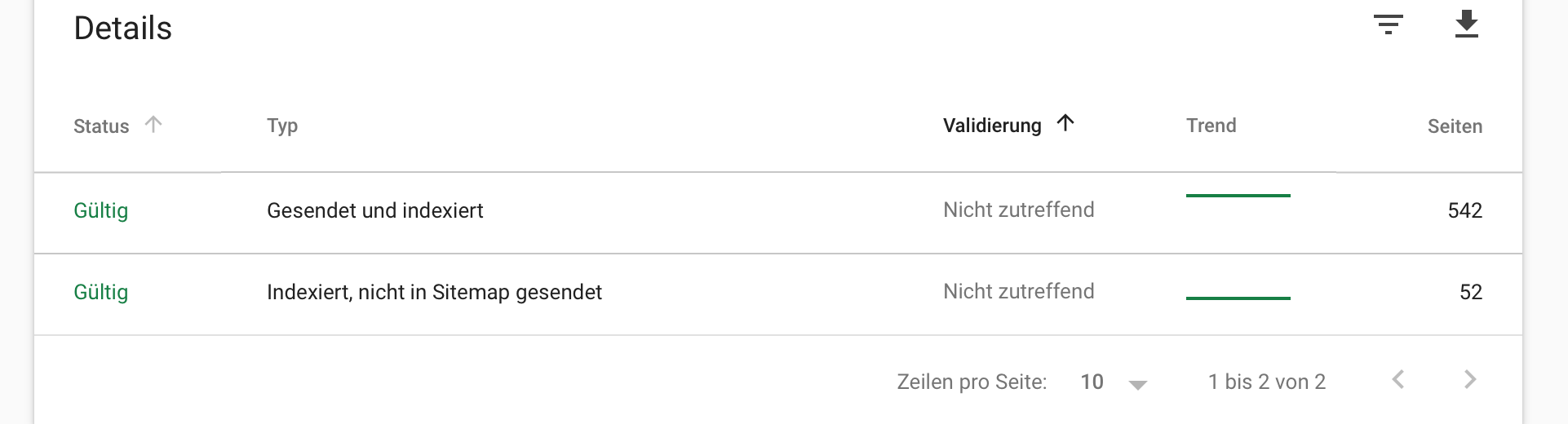 Seiten im Index, die nicht mit der Sitemap gesendet werden