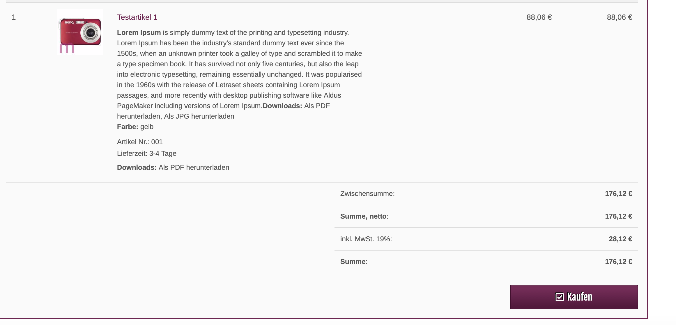 Nach der Bestellbeschreibung werden die Artikeleigenschaften immer noch ohne Leerzeichen und ohne Leerzeile angeklatscht.