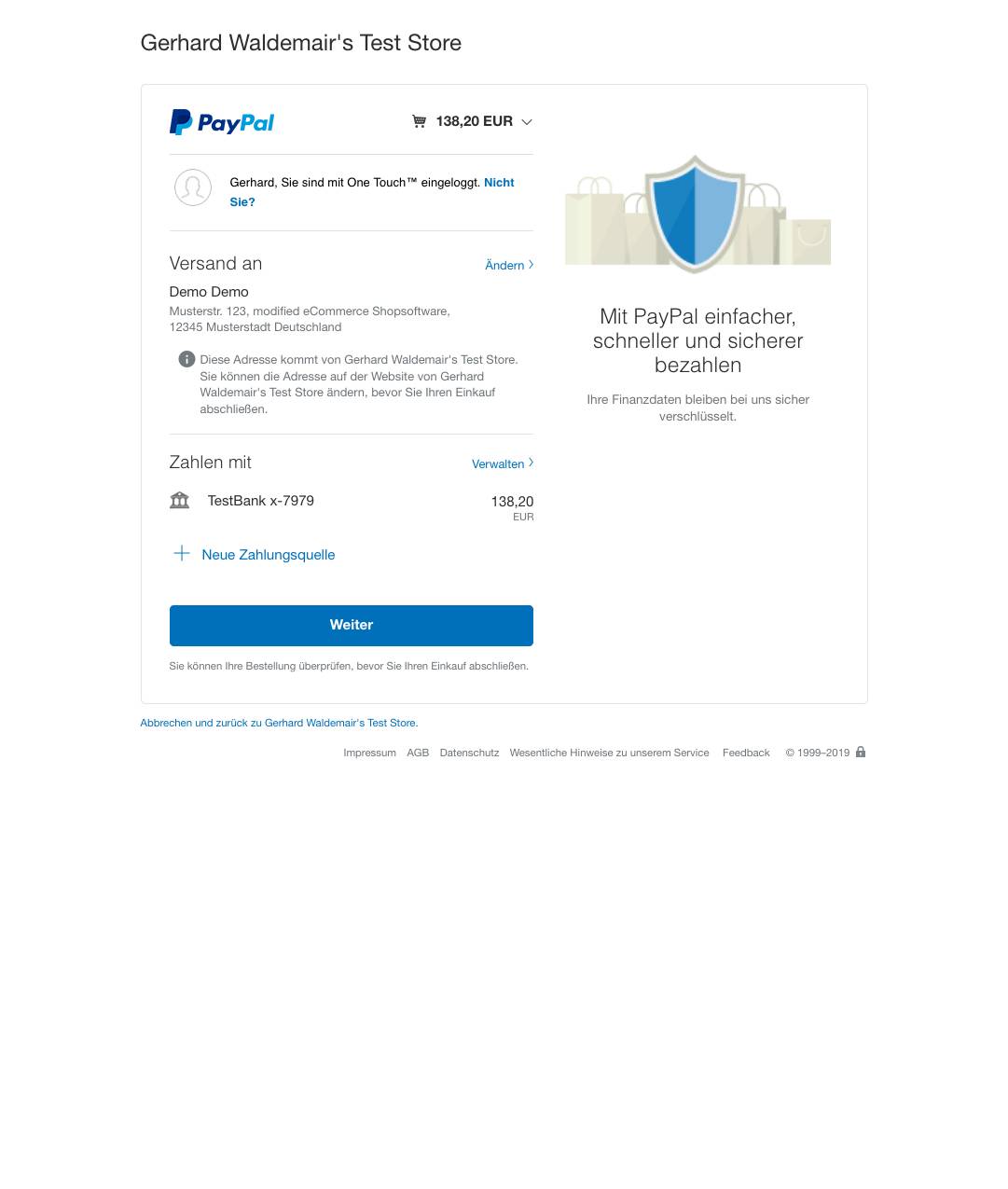 Ein nachträgliches Ändern der Versandadresse sollte genauso wie bei Paypal Plus nicht mehr möglich gemacht werden.