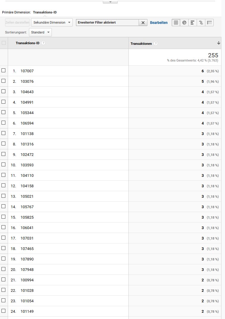 Die falsch übermittelten Bestellungen (mehr als einmalig gezählt) betreffen insgesamt ca 4,5% der gesamten Daten unseres Shops!