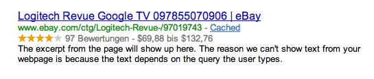 Wenigstens die Basisdaten für die anzeige der süßen gelben Sterne bei Bewertungen und Preis sollten rein.
