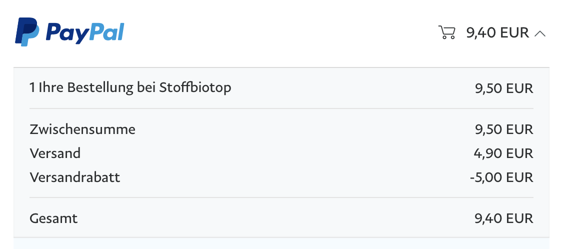 Gutschein wird bei Paypal als Versandrabatt deklariert