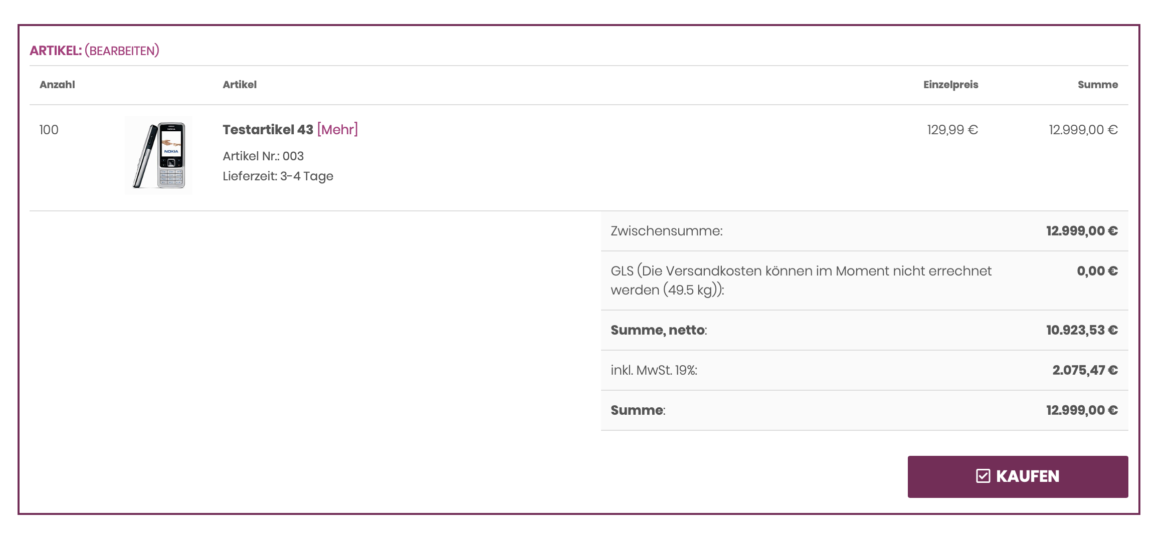 Fehler GLS Versandmodul