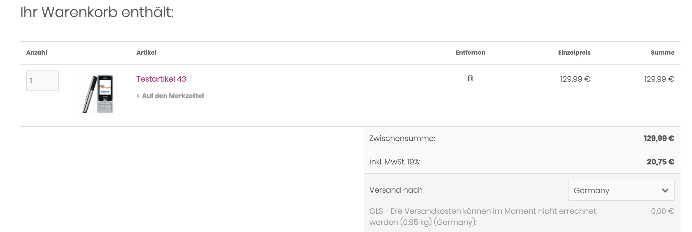 Andererseits funktioniert die Eingabe unter "GLS Zone 1 Versandkostentabelle"