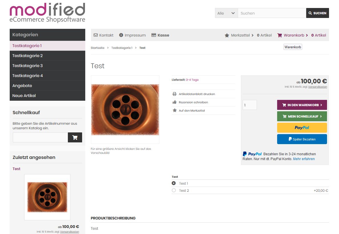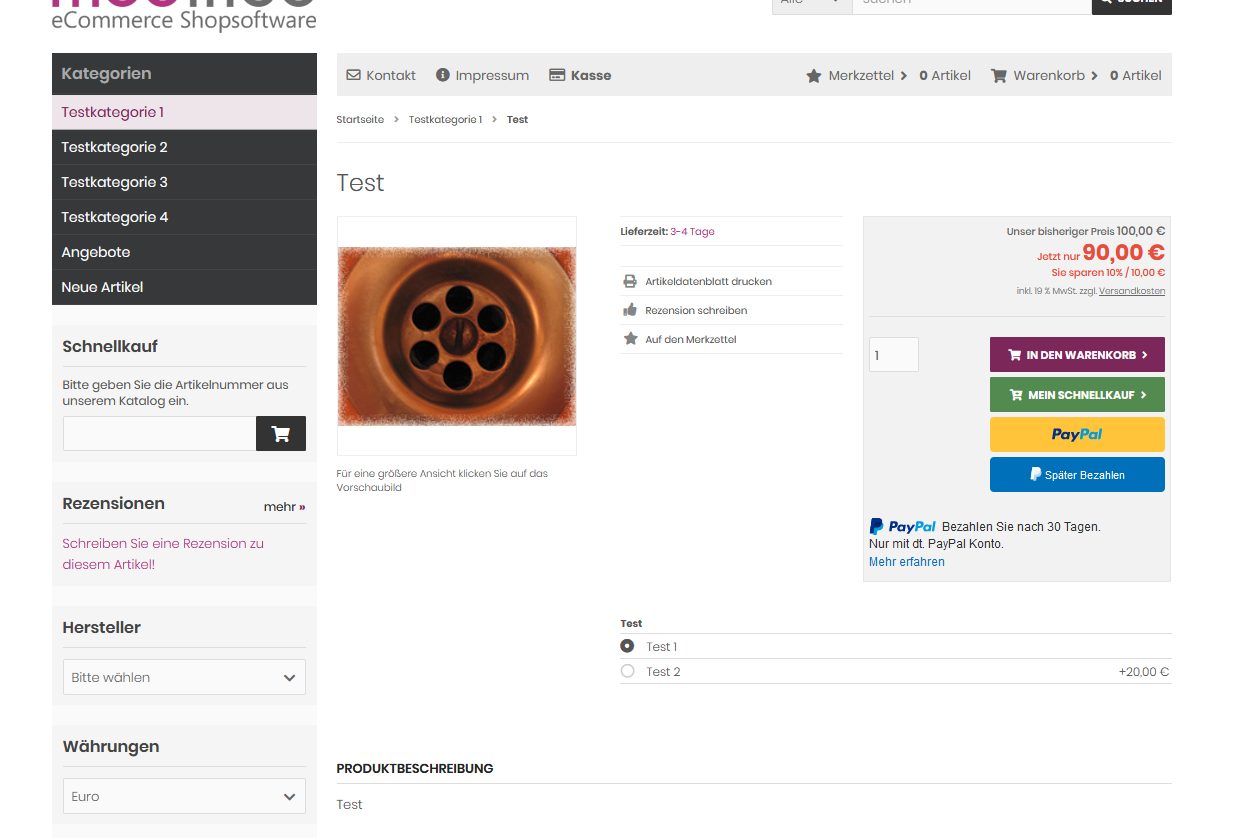 Im Screenshot sind 2 Artikel. Einer davon hat Attribute, auch mit einem Aufpreis.