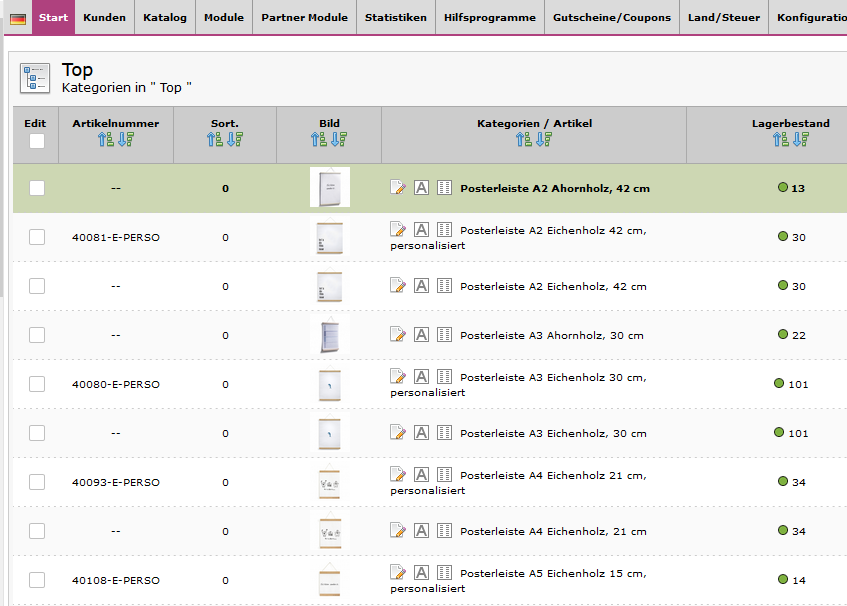 Ebensowenig werden die Artikelnummern im Backend angezeigt - siehe beigefügte Datei.