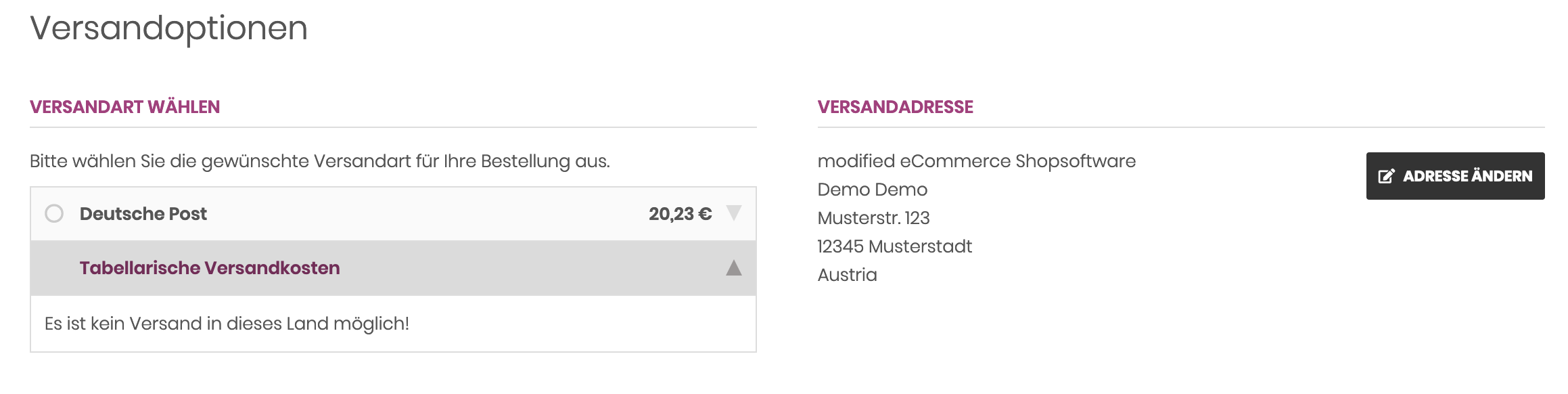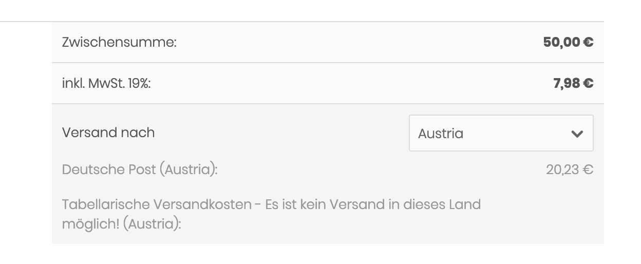 Die Anzeige von "Es ist leider kein Versand in dieses Land möglich"