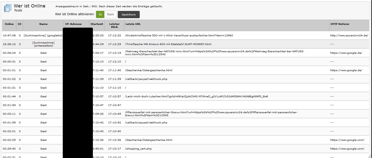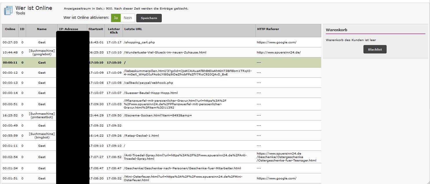 Admin-Backend: whos_online & "springende" Warenkorbbox bei Bots