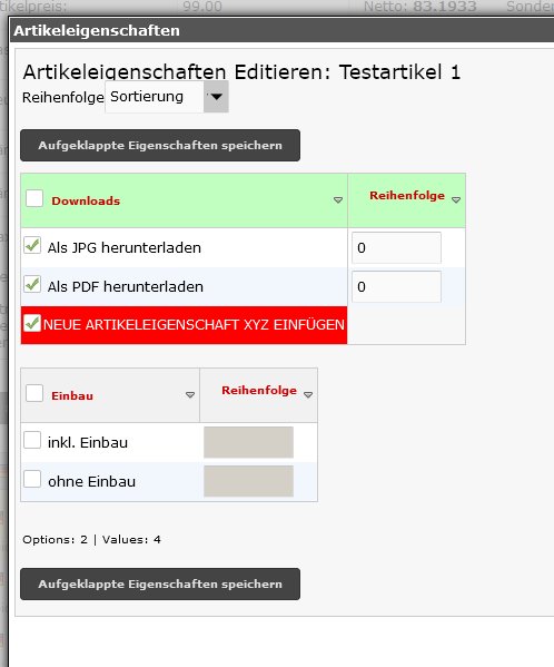 Es wäre wünschenswert, wenn man direkt beim Artikel bearbeiten eine weitere Artikeleigenschaft hinzufügen könnte.