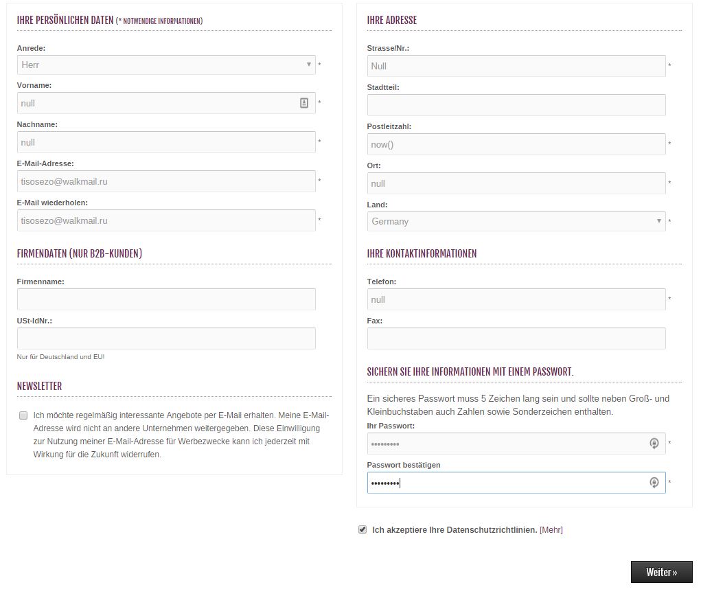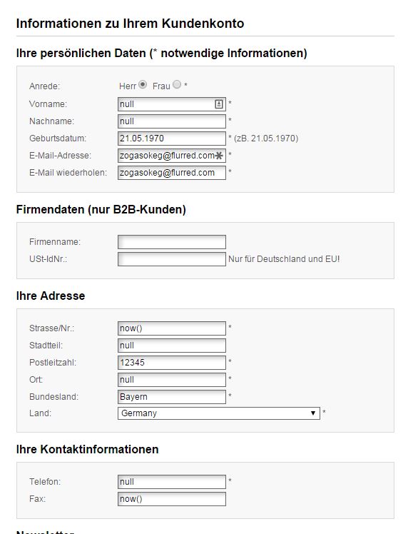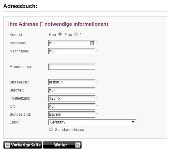 In allen anderen Fällen, wenn Insert/Update funktioniert hat, kann man Felderüberprüfung umgehen und die Felder, wie Vorname und Nachname, leer füllen. Was dann im Bestellprozess Probleme geben kann.