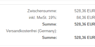 Kleinunternehmen - Warenkorb zeigt "inkl. MwSt. 19%" an