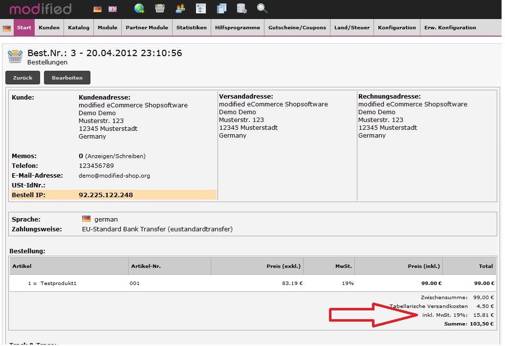 Falsche USt. beim Bearbeiten von Bestellungen