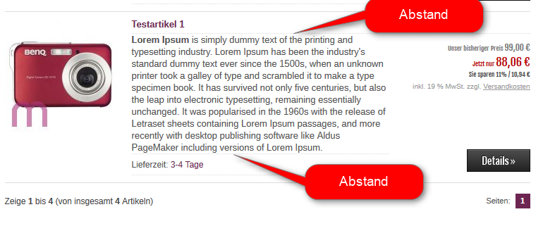 - In der gleichen Ansicht im List-Listing, klebt die Artikelbeschreibung doch recht nahe oben und unten an der gestrichelten Linie, hier könnte man 1-5 Pixel Abstand rein machen.