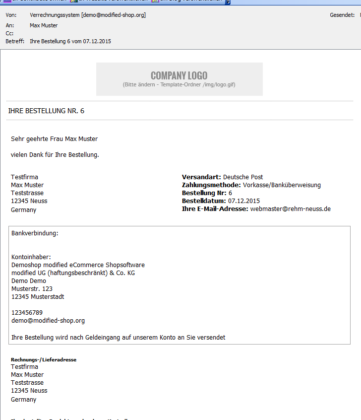 Anbei auch 2 Screens von Mails die dann verschickt werden.