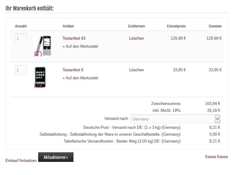 im Warenkorb im Demoshop sind einige Fehler in Bezug auf die Darstellung.