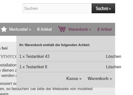 einmal "löschen" im Warenkorb-Flyout