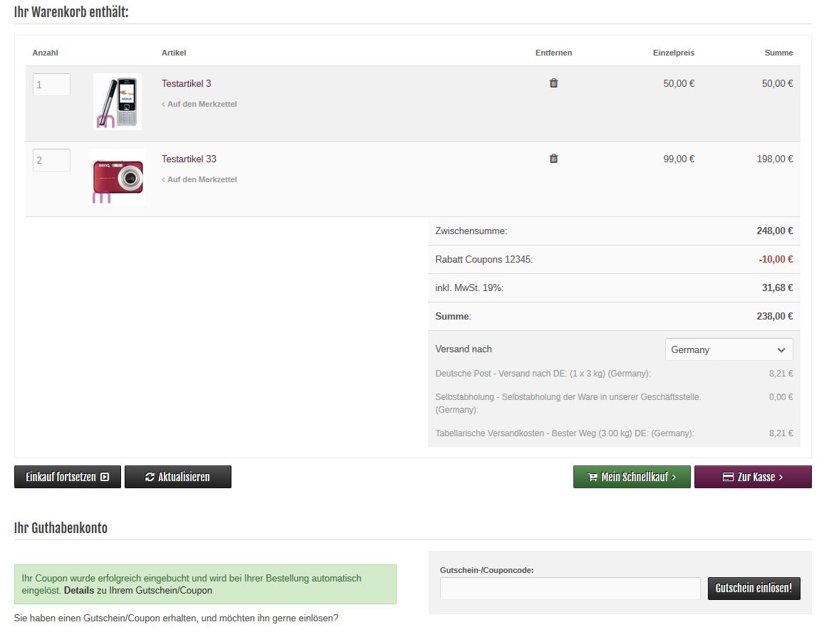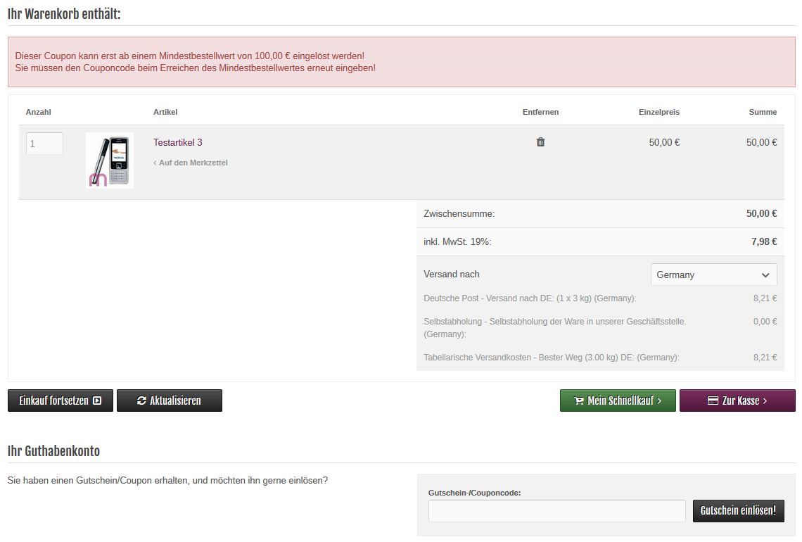 Generell wäre es sicherlich sinnvoller die beiden Ausgaben für Erfolg/Misserfolg beim Gutschein an der selben Stelle ausgeben zu können.
